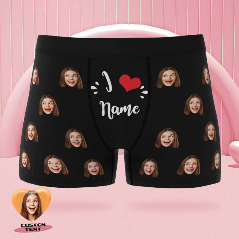 Custom Face Boxer Briefs I Love Name Personalized Naughty Valentine's Day Gift for Him