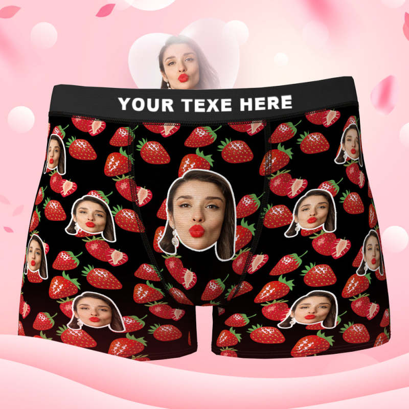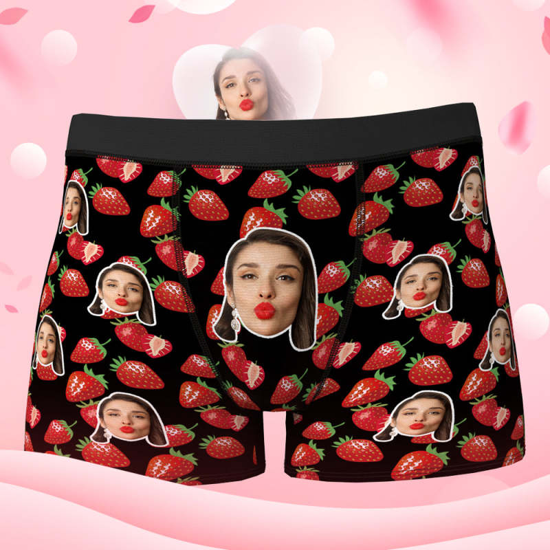 Custom Face Boxer Shorts Personalized Photo Boxer Shorts Valentine's Day Gifts - Full of Strawberry