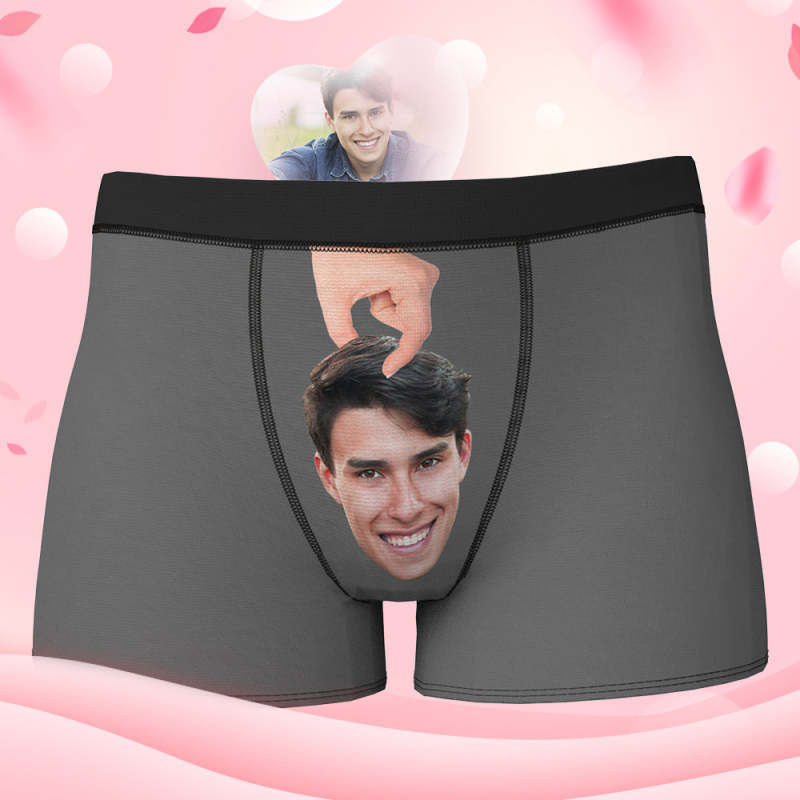 Custom Face Boxer Shorts Personalized Underwear for Boyfriend - Hand Print