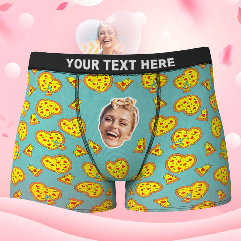 Custom Face Boxer Shorts Personalized Underwear for Boyfriend - Love Heart Pizza