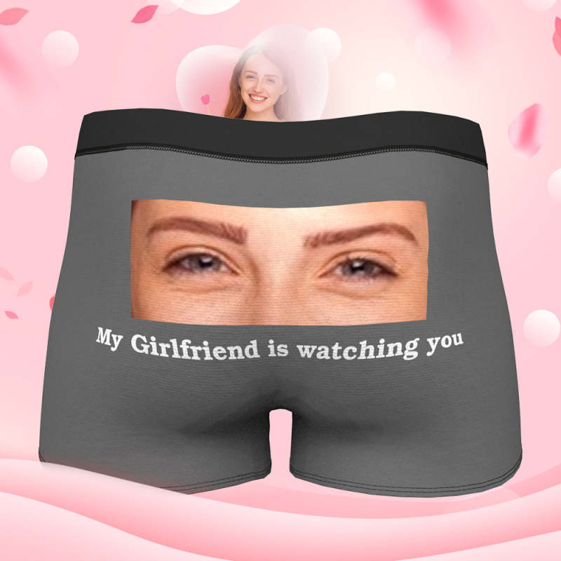 Custom Face Boxer Shorts Personalized Underwear for Boyfriend - My Girlfriend is watching you