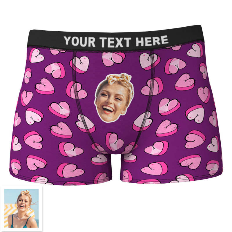 Custom Face Boxer Shorts Personalized Underwear for Boyfriend - Pink Hearts