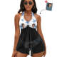 Custom Face Boyfriend Women's Strappy Neck Dress Swimsuit - Blue and White Stripes