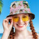 Custom Face Bucket Hat Number in Wine Glass Pink And Green Sleeves Face Bucket Hat Gift for Him