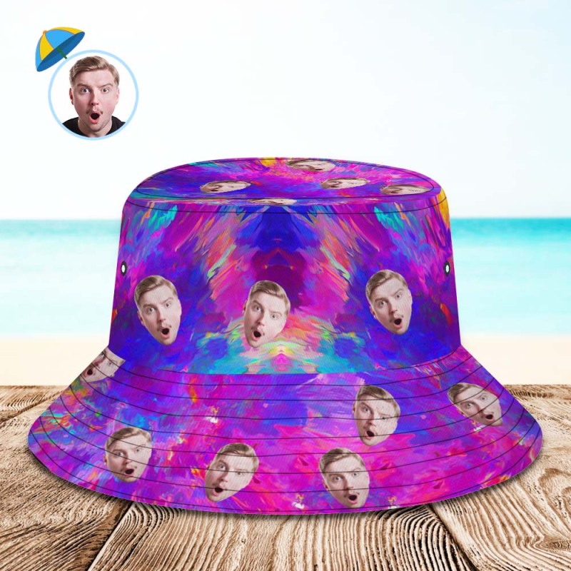 Custom Face Bucket Hat Unisex Personalized Hiking Beach Sports Hats Purple Abstract Texture