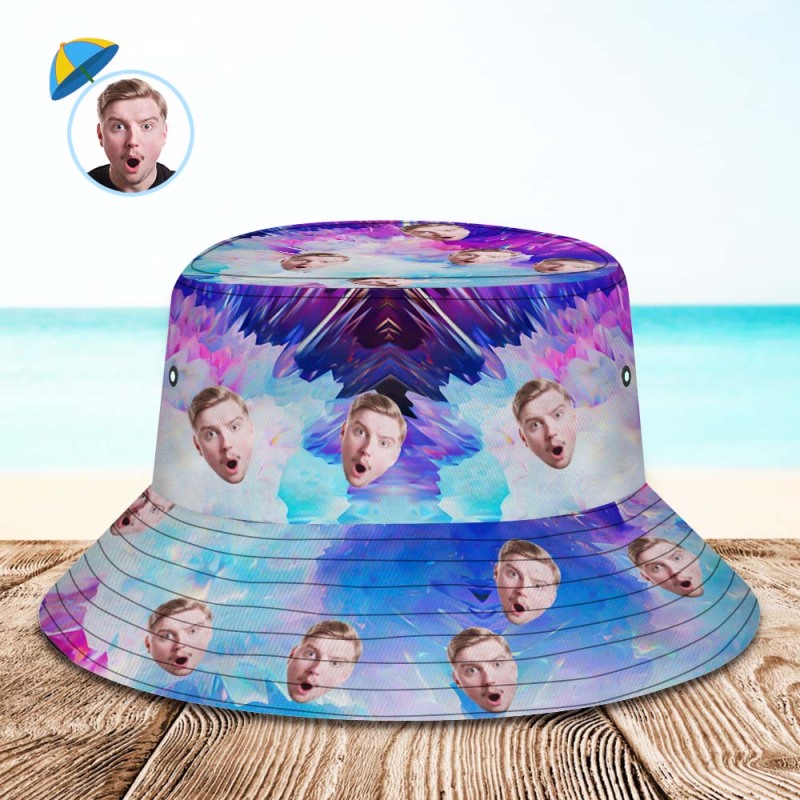 Custom Face Bucket Hat Unisex Personalized Hiking Beach Sports Hats Purple and Blue Abstract Texture