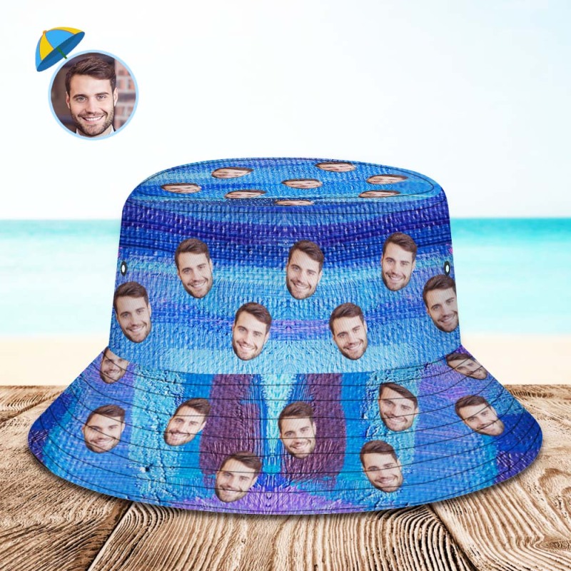 Custom Face Bucket Hat Unisex Personalized Photo Wide Brim Outdoor Summer Hats Blue Oil Painting Style