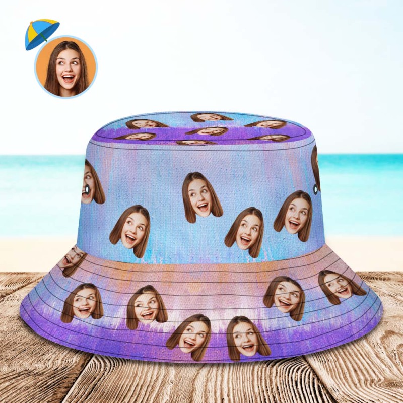 Custom Face Bucket Hat Unisex Personalized Photo Wide Brim Outdoor Summer Hats Purple Blue and Orange Oil Painting Style