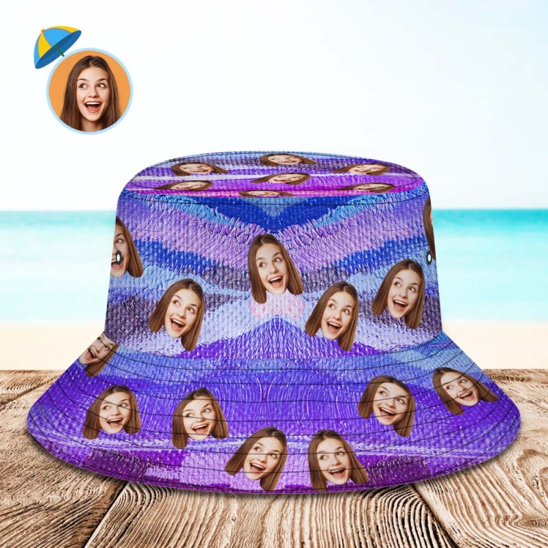 Custom Face Bucket Hat Unisex Personalized Photo Wide Brim Outdoor Summer Hats Purple Oil Painting Style