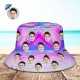 Custom Face Bucket Hat Unisex Personalized Wide Brim Outdoor Summer Cap Hiking Beach Sports Hats Blue and Pink Abstract Texture