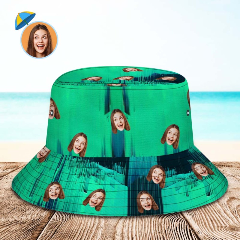 Custom Face Bucket Hat Unisex Personalized Wide Brim Outdoor Summer Cap Hiking Beach Sports Hats Dark Green Abstract Texture