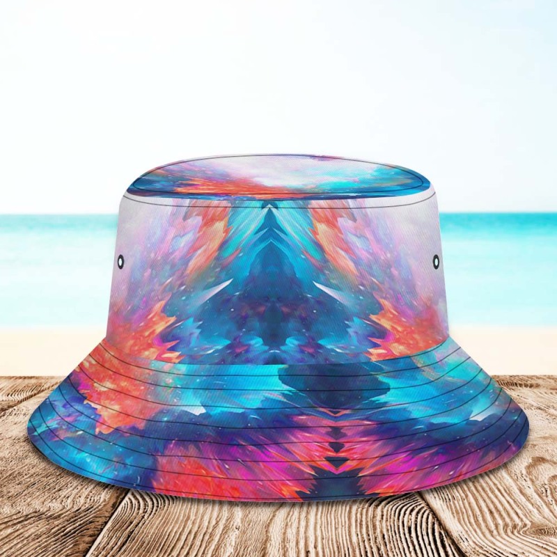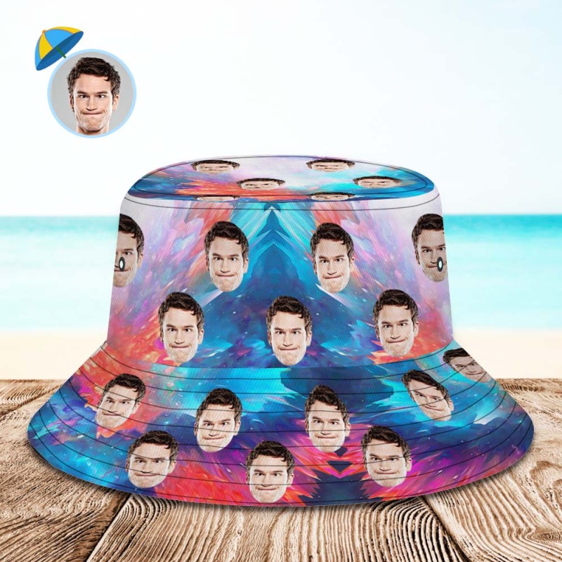 Custom Face Bucket Hat Unisex Personalized Wide Brim Outdoor Summer Hats Blue and Orange Abstract Texture