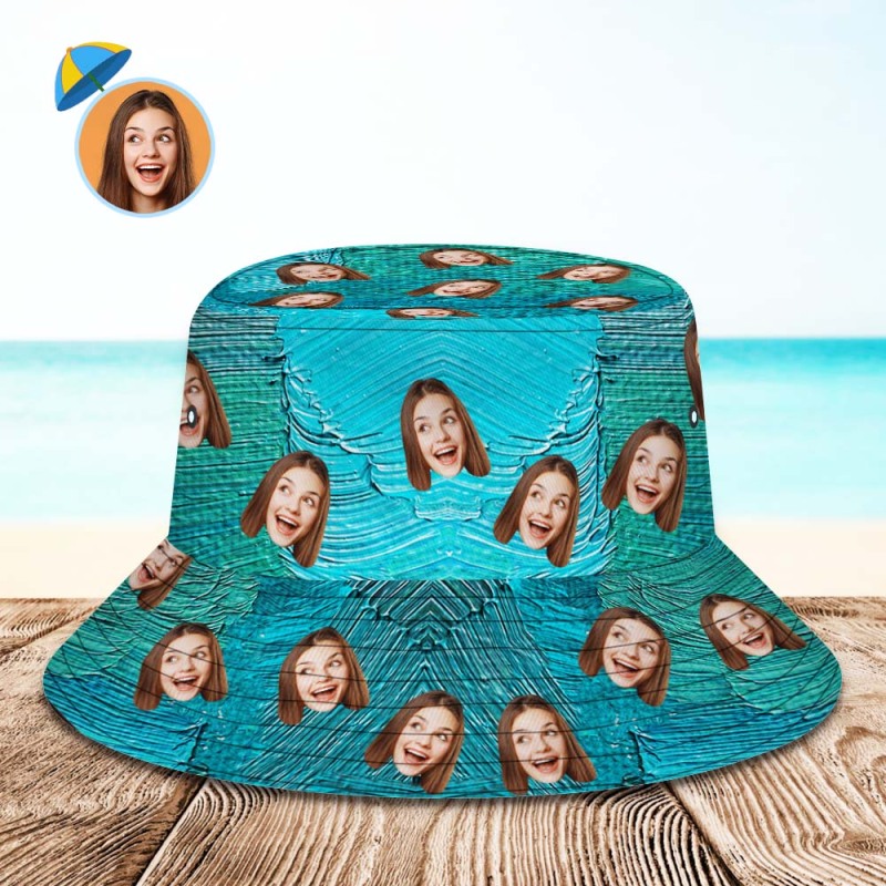 Custom Face Bucket Hat Unisex Personalized Wide Brim Outdoor Summer Hats Blue-green Oil Painting Style
