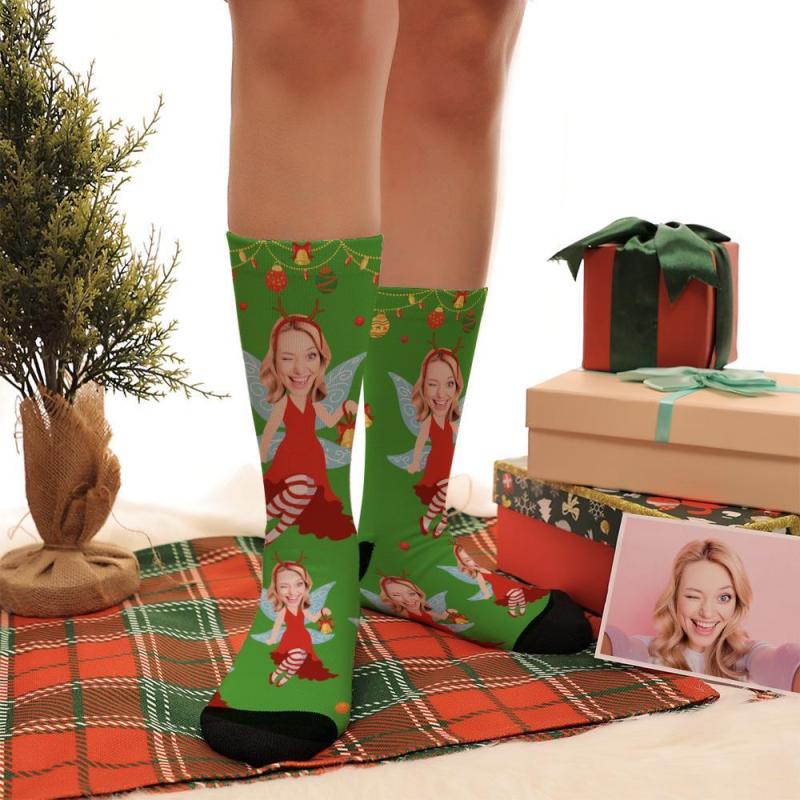 Personalized Face With Wings Elf Socks Christmas Present