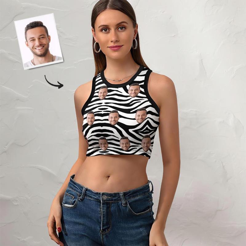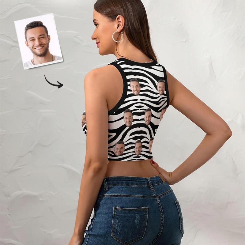 Custom Face Classic Zebra Pattern Vest Sexy Custom Ladies Short Racer Vest