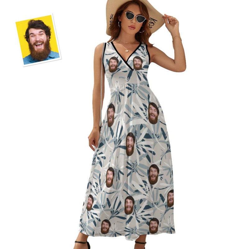 Custom Face Dress Personalized Hawaiian Blue and White Long Skirt Gift for Her