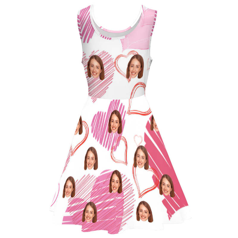 Custom Face Dress Pink Heart Round Neck Sleeveless Dress for Women
