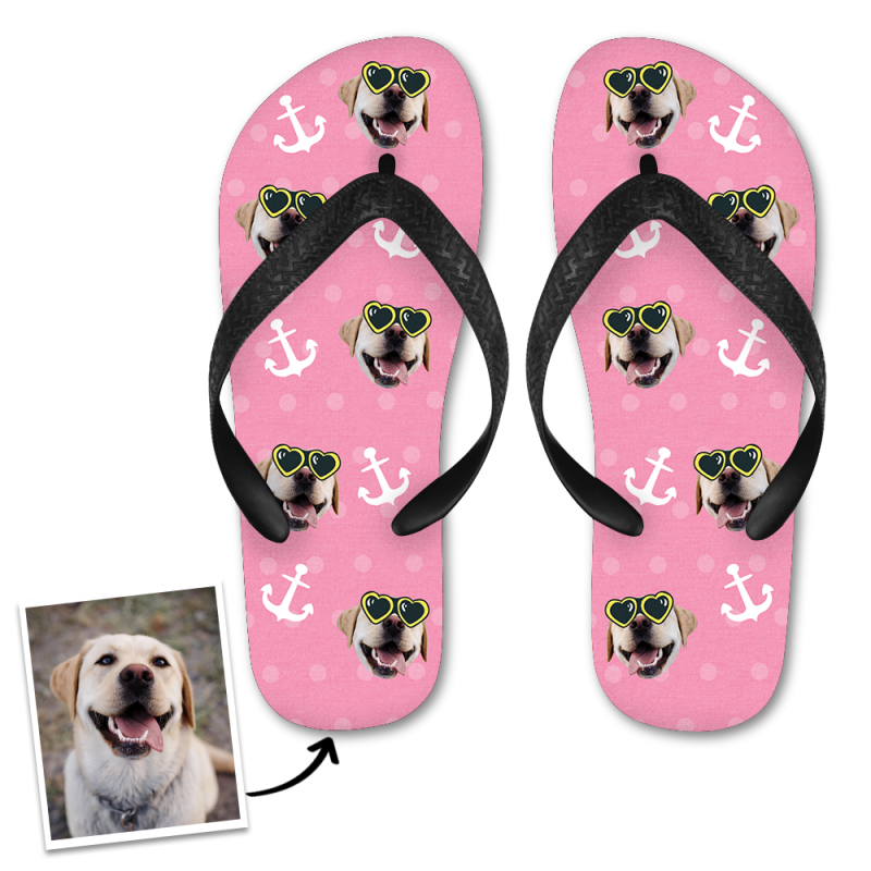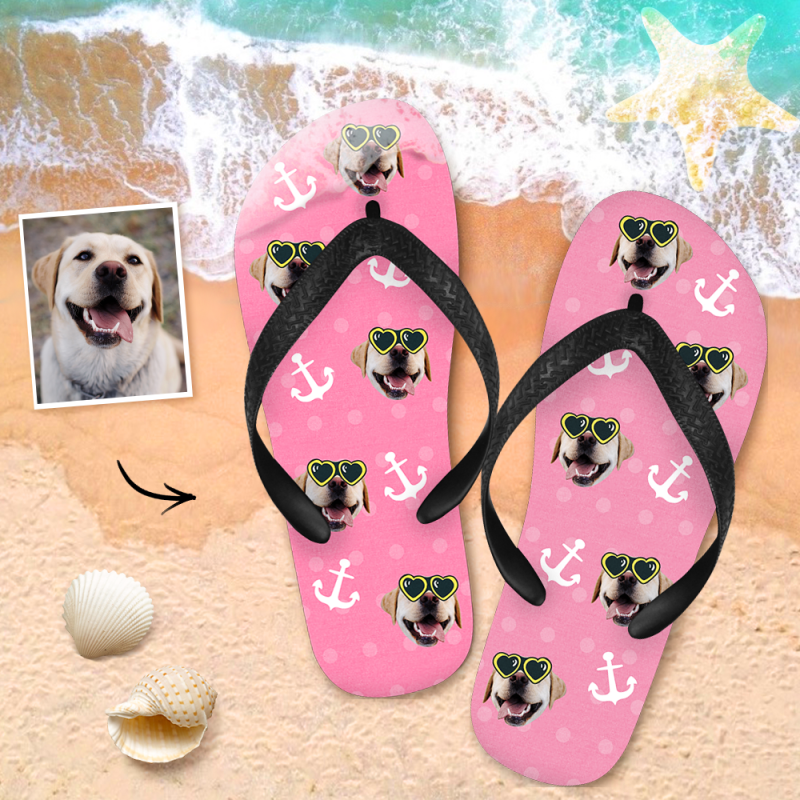 Custom Face Flip Flops Personalized Photo Flip Flops Summer Beach Slide Sandals - Dog