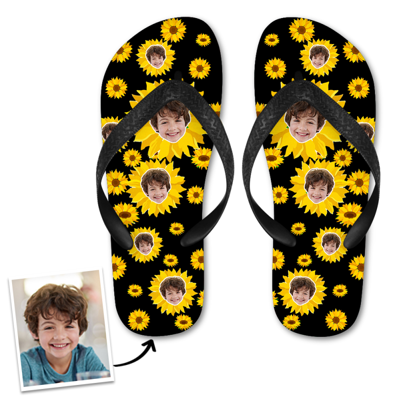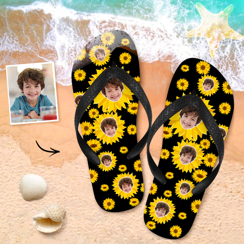 Custom Face Flip Flops Personalized Photo Flip Flops Summer Beach Slide Sandals - Small Sunflower