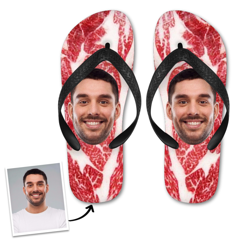 Custom Face Flip Flops Personalized Photo Flip Flops Summer Beach Slide Sandals - Snowflake Beef