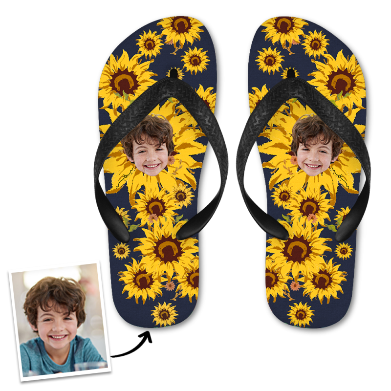 Custom Face Flip Flops Personalized Photo Flip Flops Summer Beach Slide Sandals - Withered Sunflower