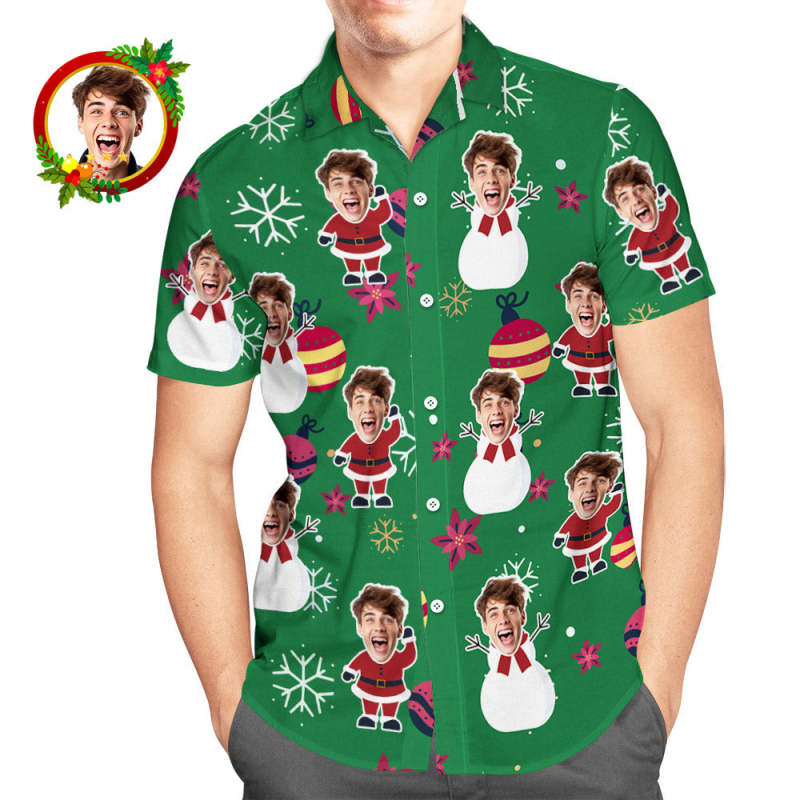 Custom Face Hawaiian Shirt Christmas Ball Men's Christmas Shirts