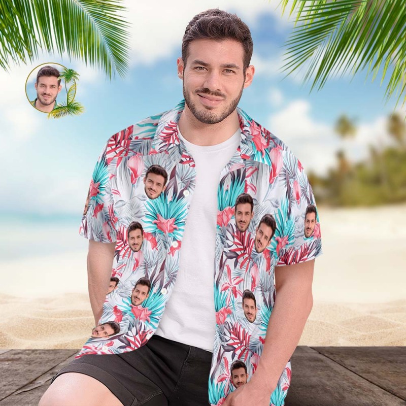 Custom Face Hawaiian Shirt Men's All Over Print Aloha Shirt Gift Romantic Hawaiian Style