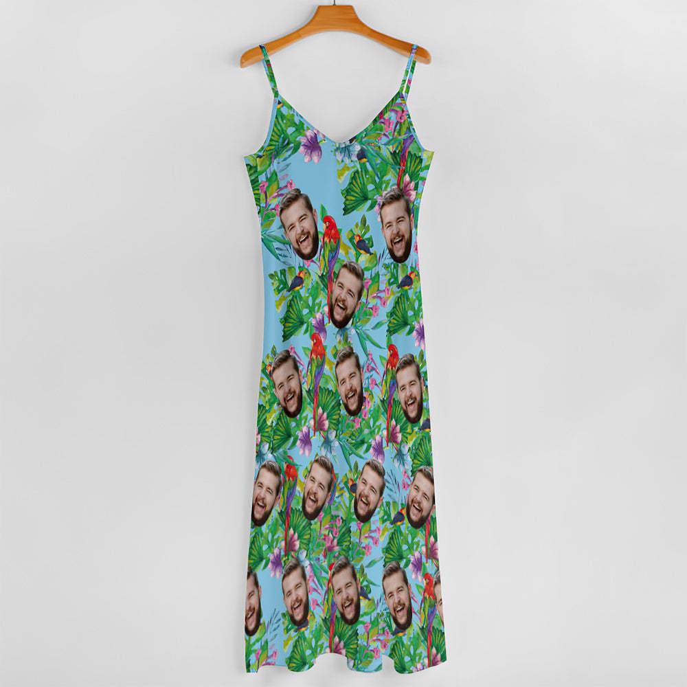 Custom Face Hawaiian Style Colorful Parrot Long Dress And Shirt Family Matching