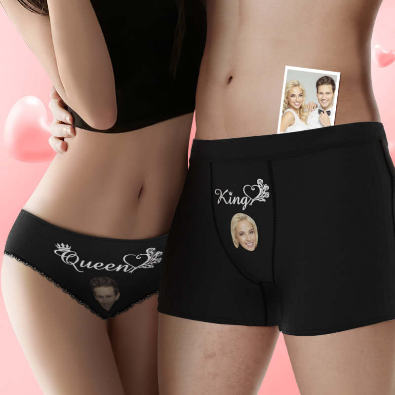 Custom Face King and Queen Couple Underwear Personalized Underwear Valentine's Day Gift