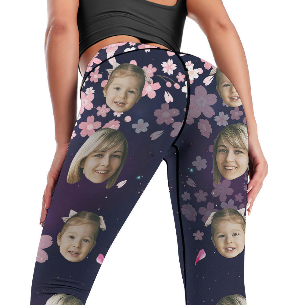 Custom Face Leggings and Tank Top Yoga Clothing Suit Mother's Day Gift - Pink Flowers