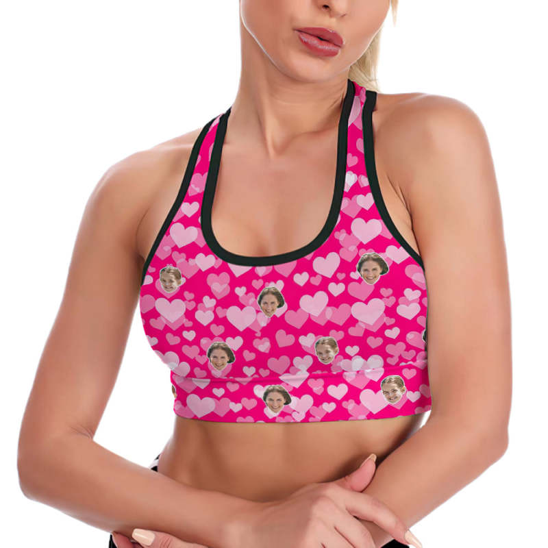 Custom Face Leggings and Tank Top Yoga Clothing Suit Mother's Day Gift - Pink Love Heart