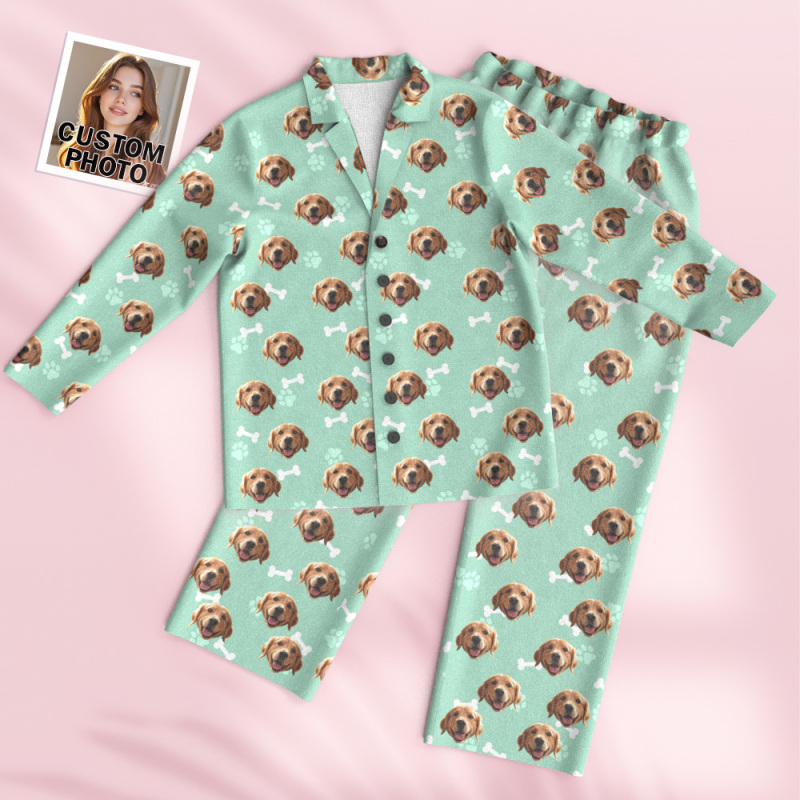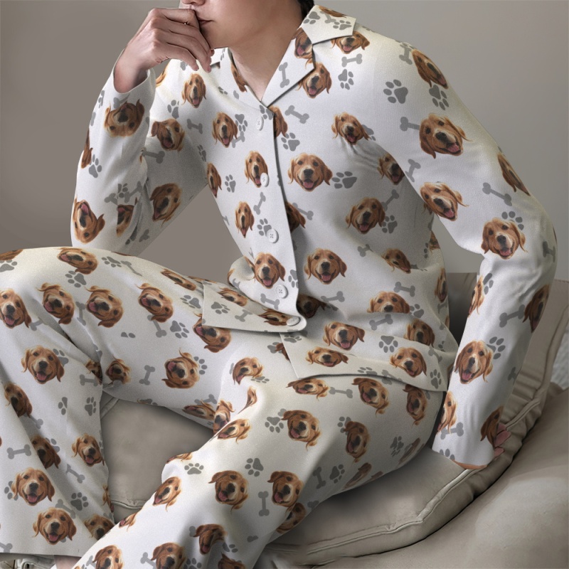 Custom Face Long Sleeve Pajamas Sleepwear Set Personalized Photo Bone Pajamas
