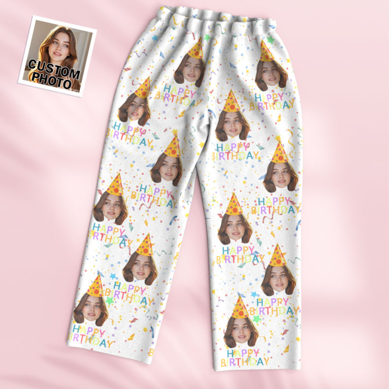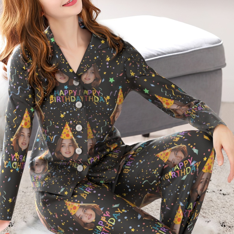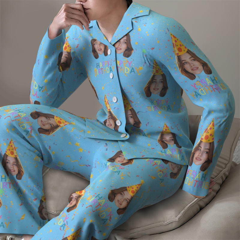 Custom Face Long Sleeve Pajamas Sleepwear Set Personalized Photo Happy Birthday Pajamas