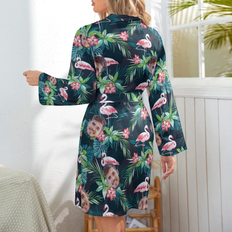 Custom Face Long Sleeved Nightgown Flamingo Flowers And Leaves