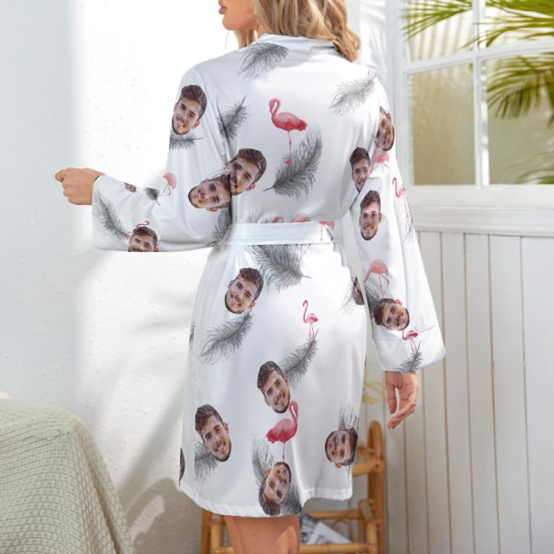 Custom Face Long Sleeved Nightgown Hawaiian Style Flamingo