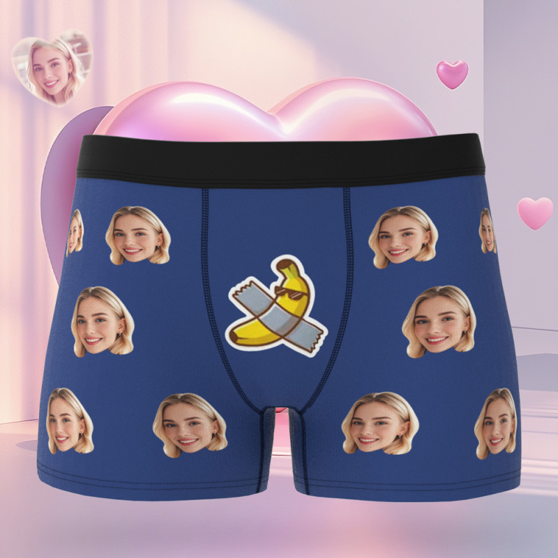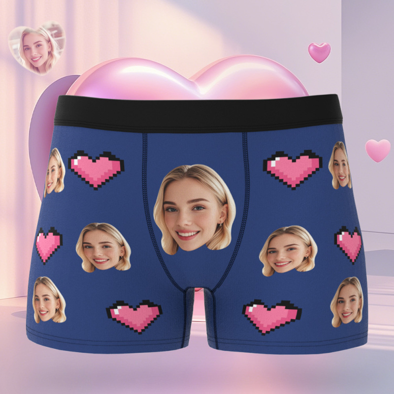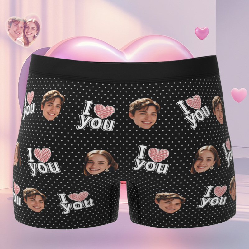 Custom Face Men's Boxer Pink Heart Style Black Underwear Gifts For Him