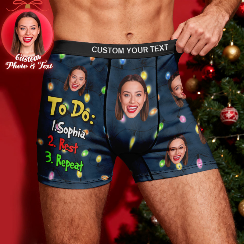 Custom Face Men's Boxer Underwear To Do List Funny Boxer Gift Personalized Photo Name Men's Boxer Briefs Christmas Gift