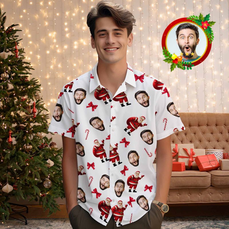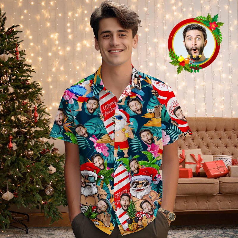 Custom Face Men's Hawaiian Shirt Personalized Santa Beach Holiday Christmas Hawaiian Shirt
