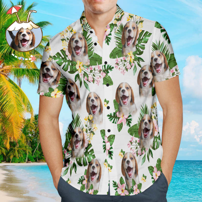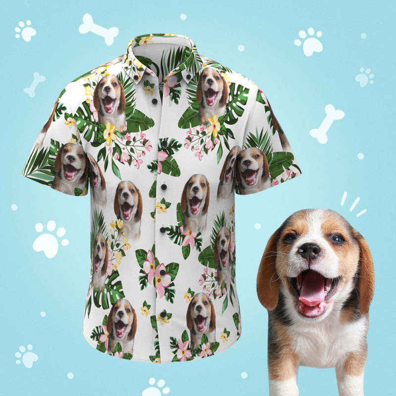 Custom Face Men's Hawaiian Shirts with Green Leaves for Pet Lover