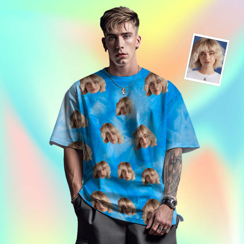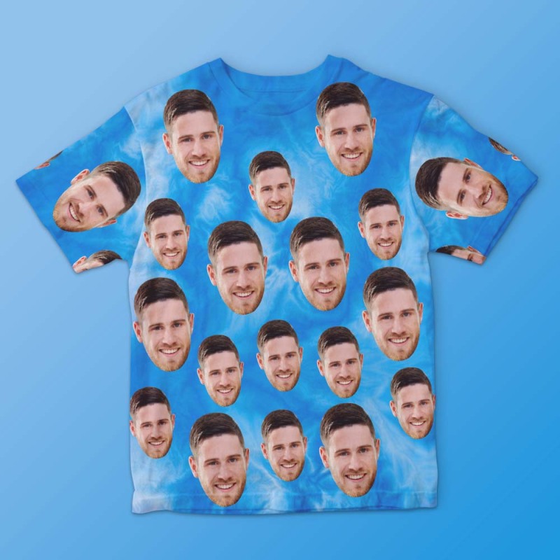 Custom Face Men's T-shirt Personalized Photo Funny Tie Dye T-shirt Gift For Men Blue