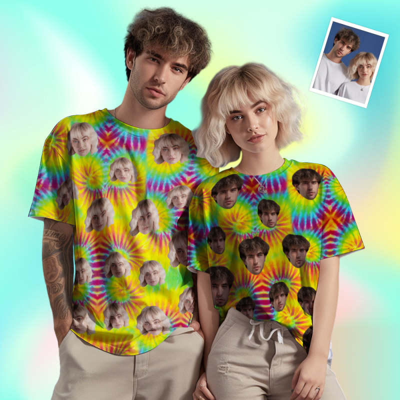 Custom Face Men's T-shirt Personalized Photo Funny Tie Dye T-shirt Gift For Men Colorful