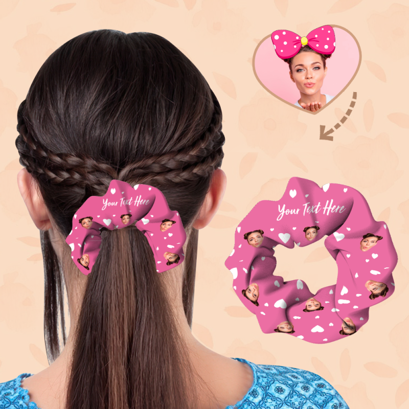 (3pcs)Custom Face On Hair Scrunchie Personalized Add Text Ponytail Holders Tiaras - Heart