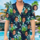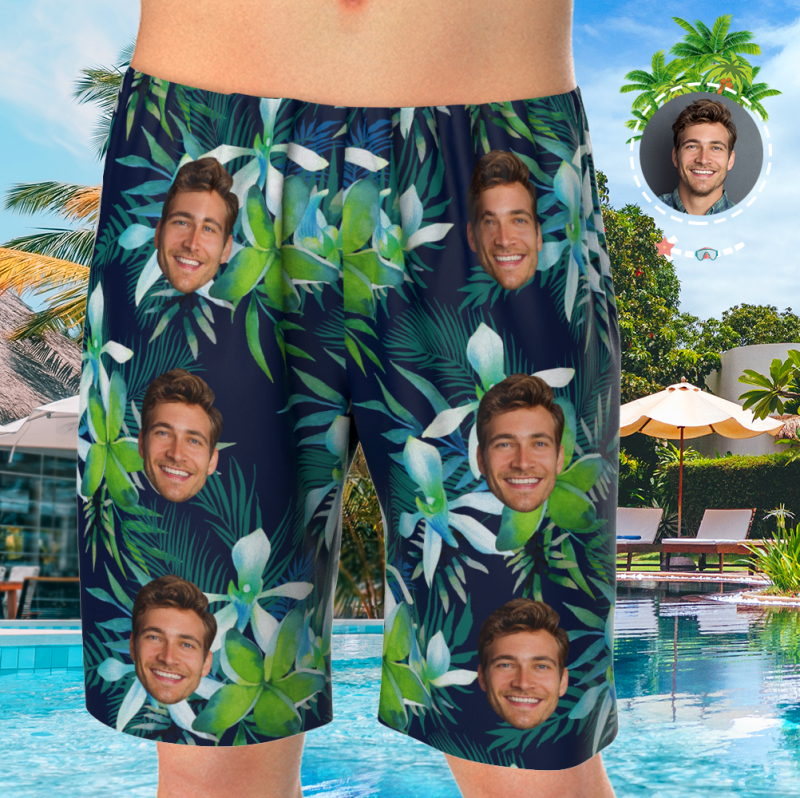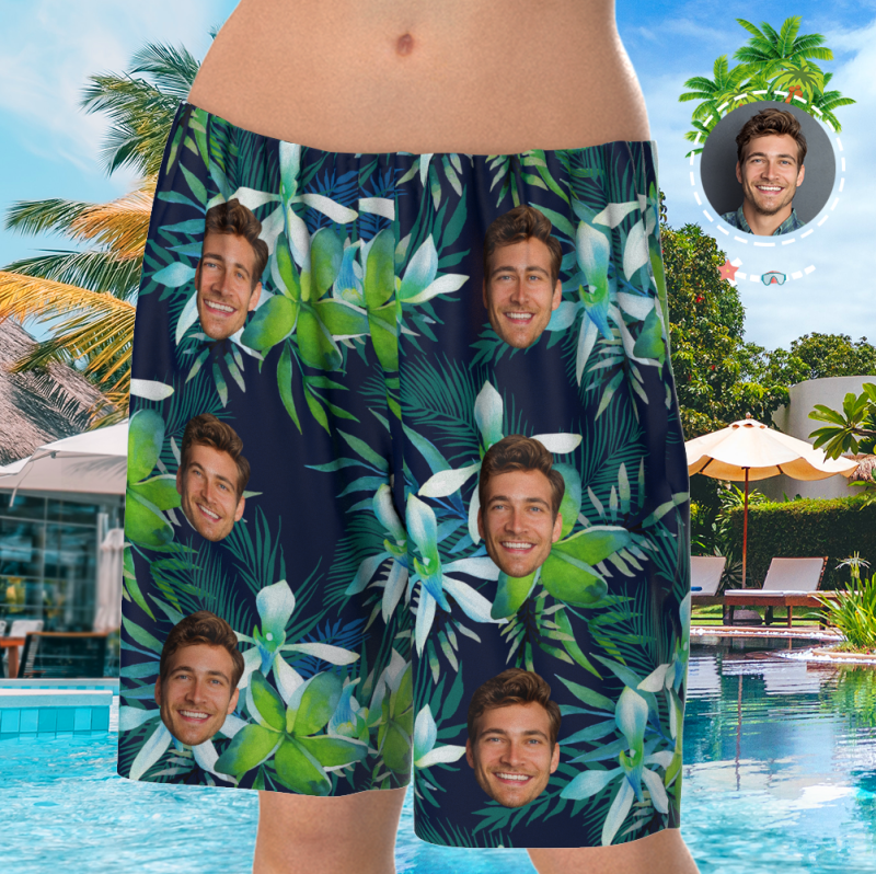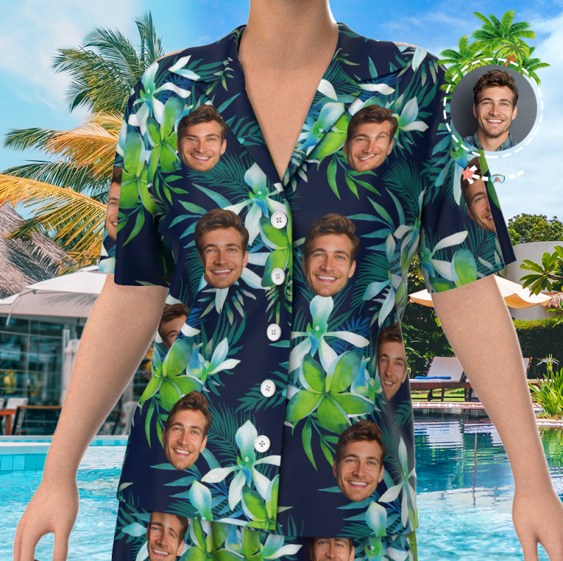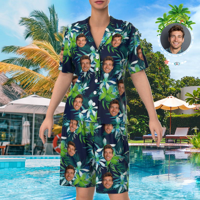 Custom Face On Pajamas Set, Short Sleeve Sleepwear, Button-Down Nightwear - Leaves