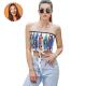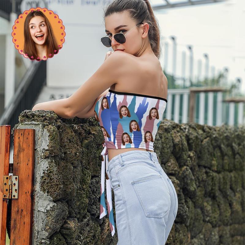 Custom Face on Women's Strapless Bow Tube Top Personalized Breast Wrap Gift for Wife - Blue Leopard Pattern
