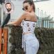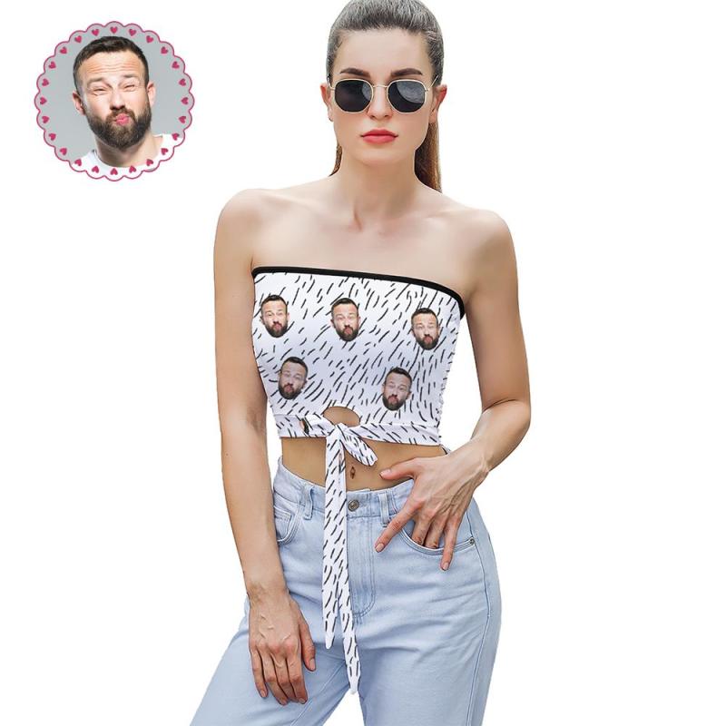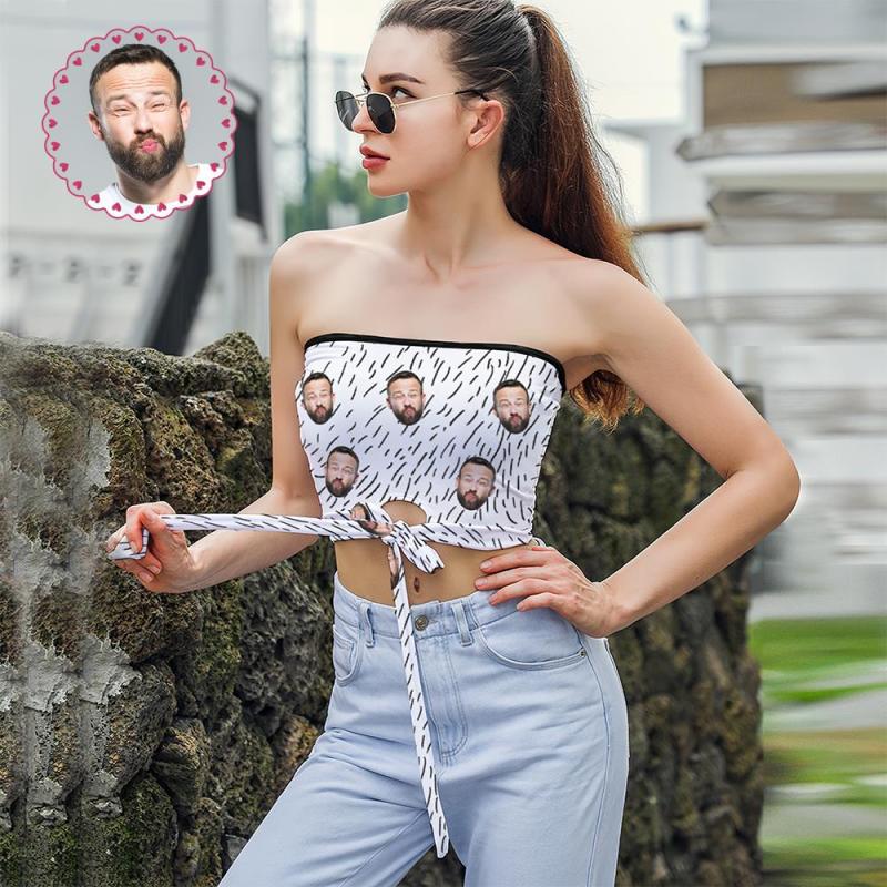 Custom Face on Women's Strapless Bow Tube Top Personalized Breast Wrap Bikini Tops with Photo Family Photo Go to Beach Perfect Gift for Wife - Black and White Stripes