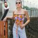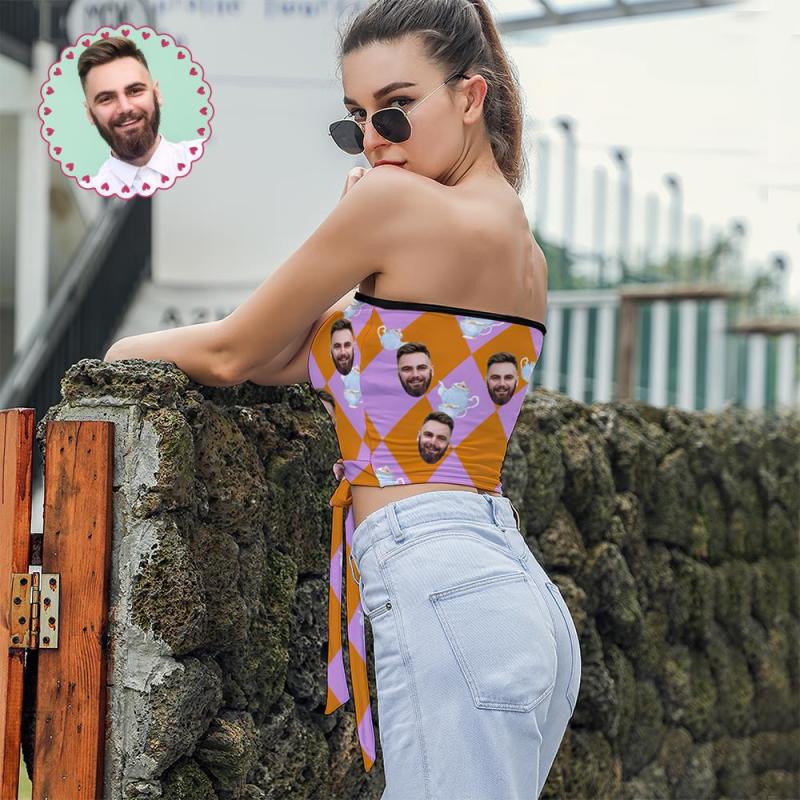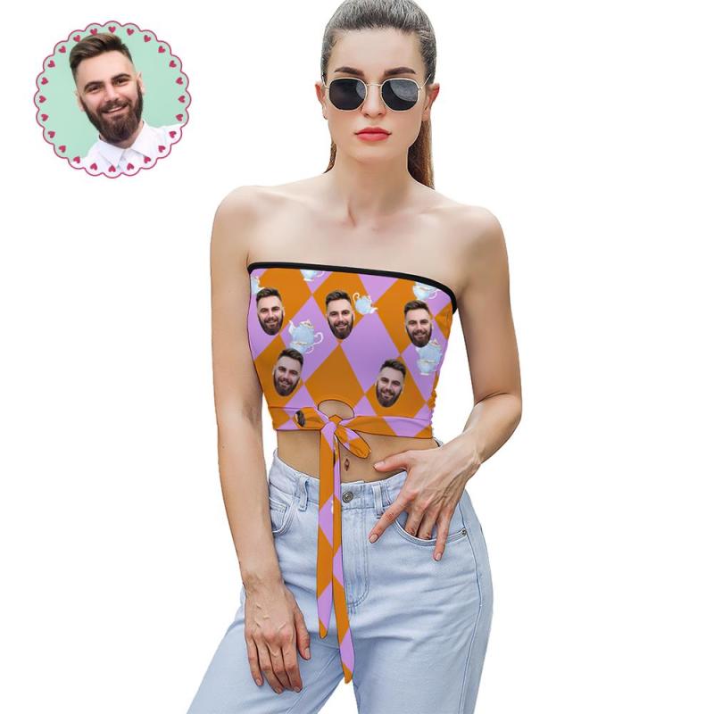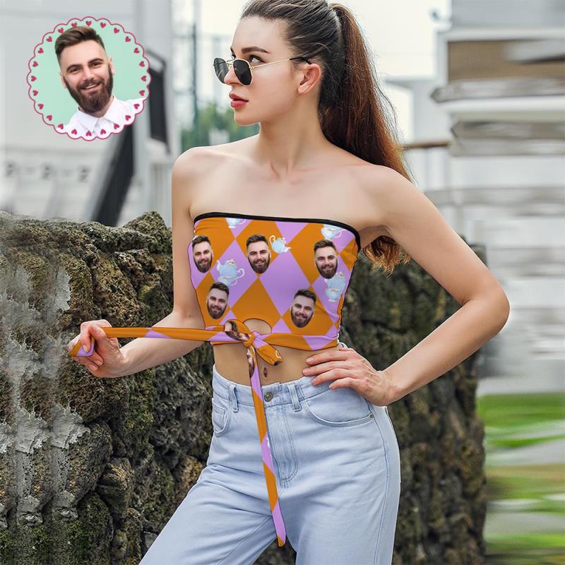 Custom Face on Women's Strapless Bow Tube Top Personalized Breast Wrap Gift for Wife - Colorful Grid