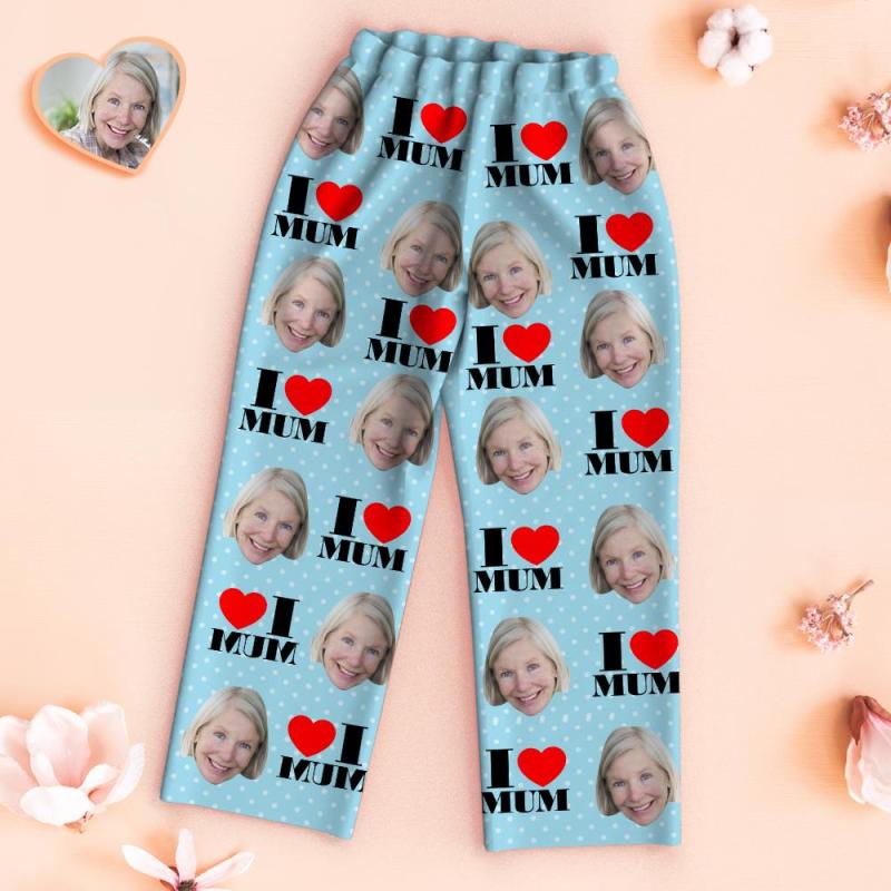 Custom Face Pajamas I Love Mum Personalized Photo Blue Pajamas Set Mother's Day Gifts