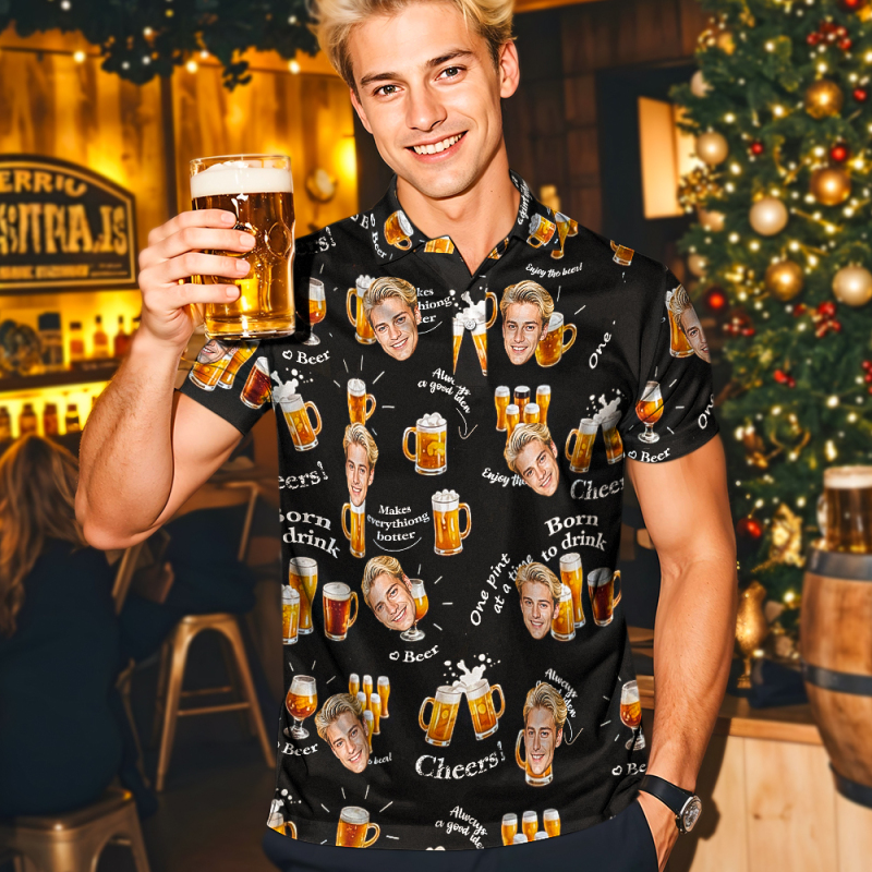 Custom Face Polo Shirt Cheer Christmas Golf Polo Shirt Beer Polo Shirt