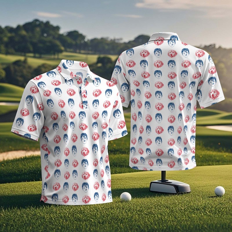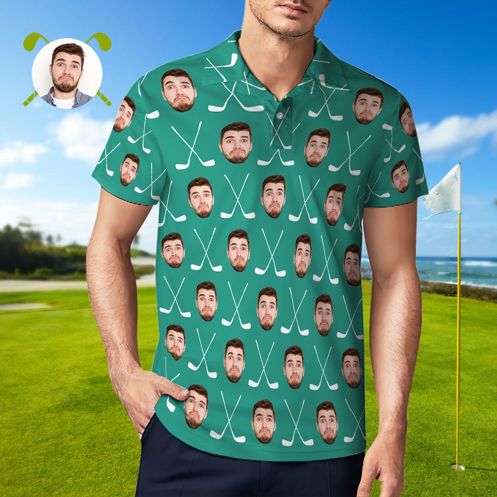 Custom Face Polo Shirt for Golfer Face on Shirt Gifts for Husband Personalized Golf Course Blue Short Sleeve Golf Shirt