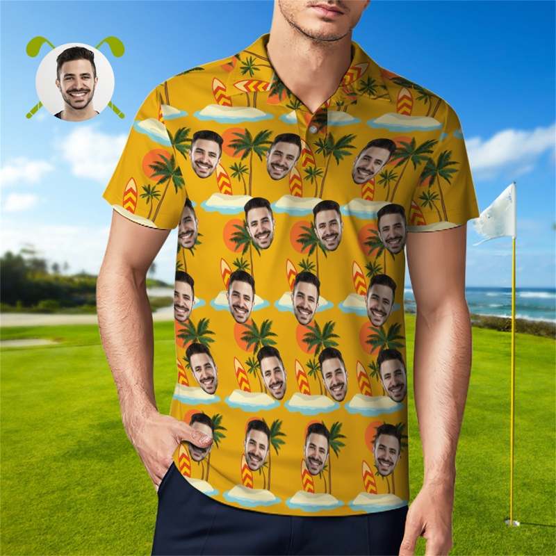 Custom Face Polo Shirt For Men Coconut Tree Beach Shirt Hawaiian Golf Shirts